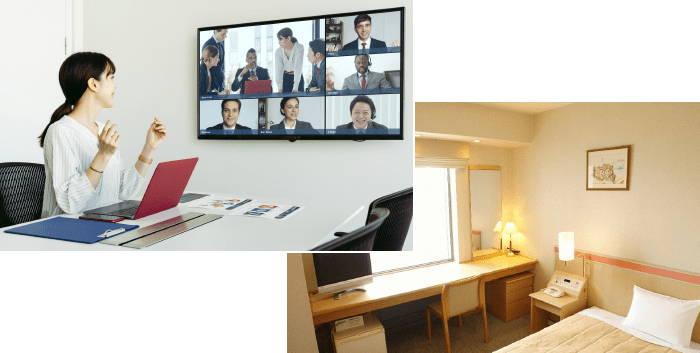 組み合わせてホテルの客室をテレワークスペース